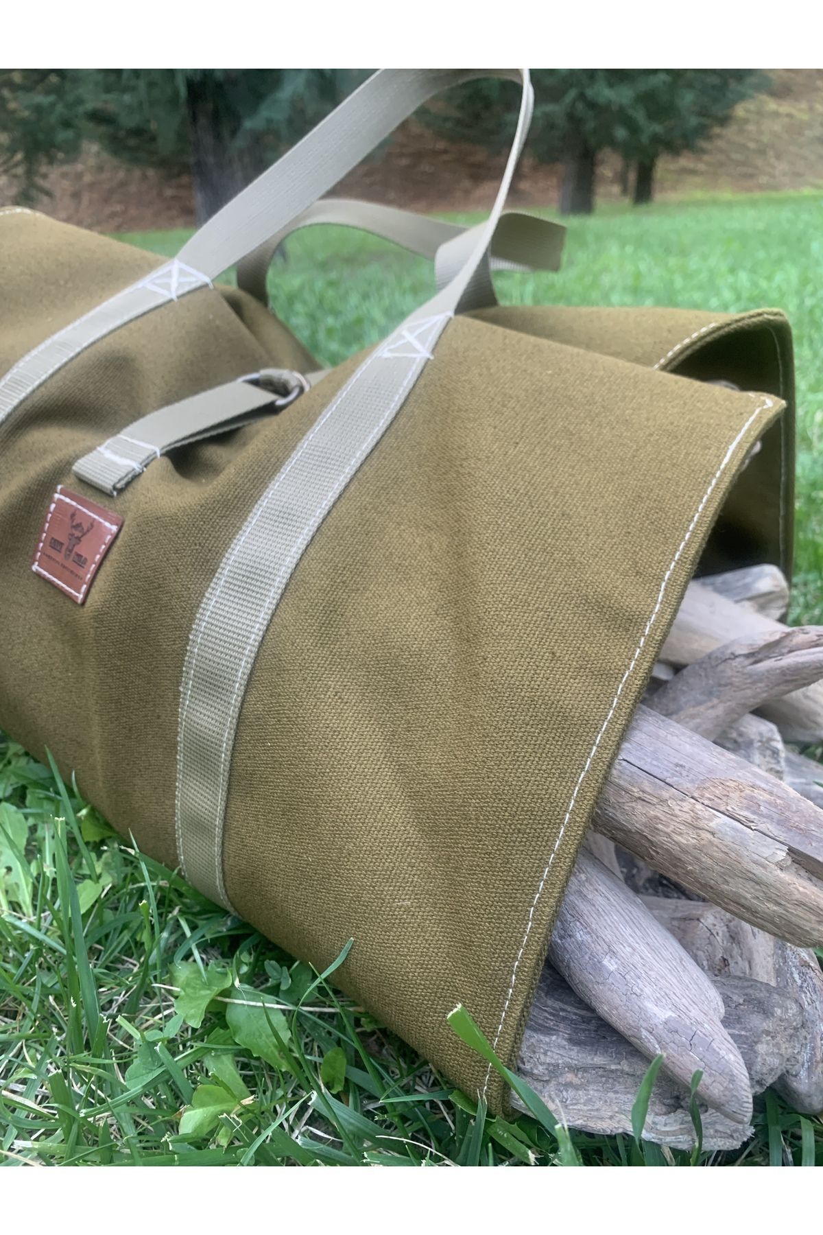 Birinci sınıf canvas kumaştan üretilen bu odun taşıma çantası, dış ortamlarda yakacak odun ve diğer malzemeleri taşımanızda kolaylık sağlar.